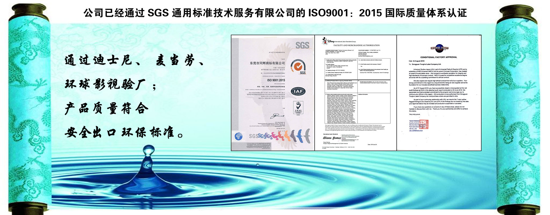 東莞市同輝商標(biāo)輔料及包裝印刷有限公司是一家專業(yè)從事商標(biāo)制造、包裝印刷的企業(yè),主營生產(chǎn)和銷售:各類織嘜商標(biāo),織章,印刷商標(biāo),印嘜,標(biāo)簽印刷,不干膠商標(biāo),絲印商標(biāo),熱轉(zhuǎn)印標(biāo),無感商標(biāo),燙嘜,皮牌商標(biāo),電壓商標(biāo)、商標(biāo)帶、繡花標(biāo),布貼標(biāo)、皮貼標(biāo)、商標(biāo)吊牌,彩卡,折盒等廣泛用于各行各業(yè)。工廠經(jīng)過多年的發(fā)展與開拓,規(guī)模日益發(fā)展壯大。從設(shè)計制作、工程研發(fā)、生產(chǎn)制造、產(chǎn)后加工、品檢、物流配送、售后服務(wù)等一套完整的優(yōu)質(zhì)服務(wù)體系,及優(yōu)秀的經(jīng)營管理團隊。已通過SGS ISO9001:2008(新版是2015版)國際質(zhì)量體系認證,產(chǎn)品質(zhì)量符合各國安全出口環(huán)保標(biāo)準(zhǔn)。承蒙國內(nèi)外客戶的大力支持,目前已有許多國際著名品牌定點授權(quán)我公司生產(chǎn),并是通過全球迪士尼FAMA認證驗廠,麥當(dāng)勞驗廠,環(huán)球影視驗廠的供應(yīng)商,是各行業(yè)值得信賴并具有實力的合作伙伴。